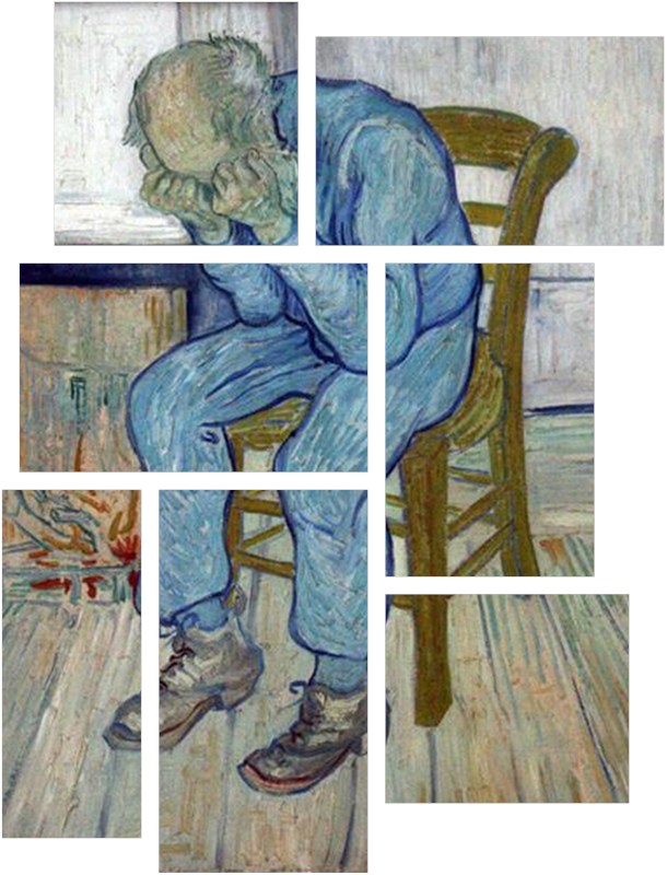 Vincent Van Gogh At Eternitys Gate - 7 Piece Fabric Peel and Stick Wall Skin Art (50x38 inches)