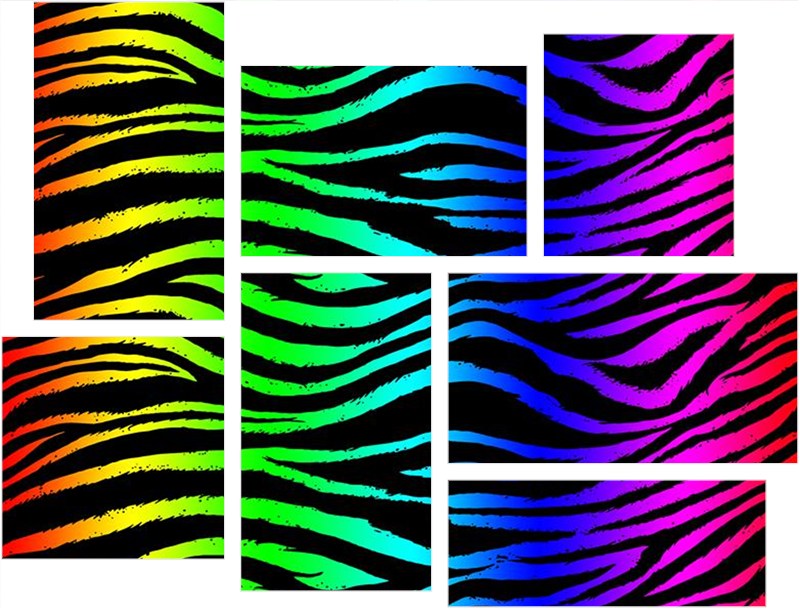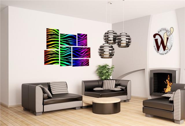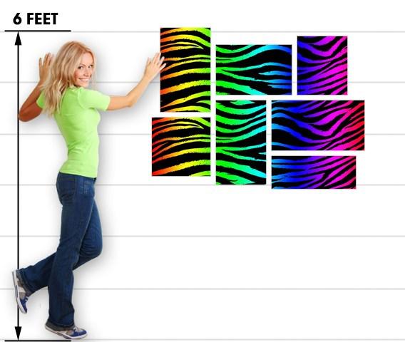 Rainbow Zebra - 7 Piece Fabric Peel and Stick Wall Skin Art (50x38 inches)