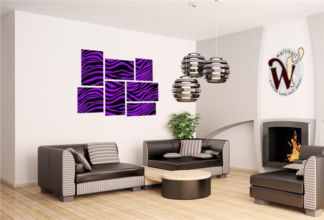 Purple Zebra - 7 Piece Fabric Peel and Stick Wall Skin Art (50x38 inches)