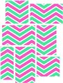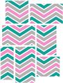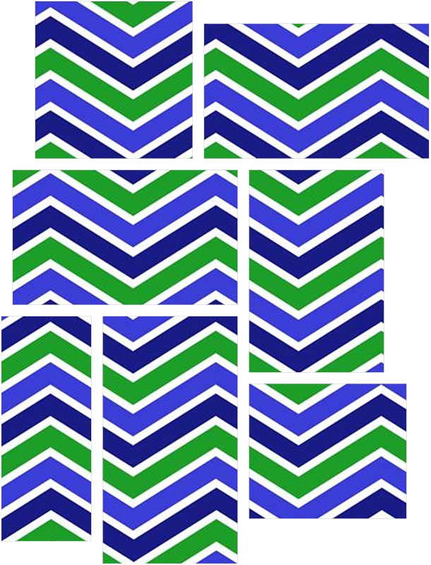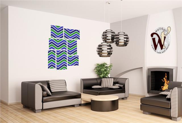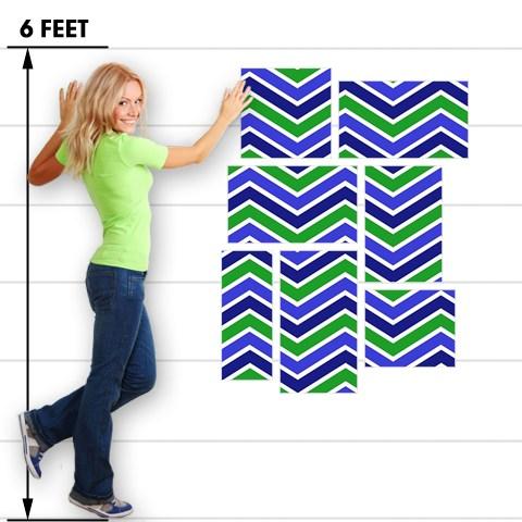 Zig Zag Blue Green - 7 Piece Fabric Peel and Stick Wall Skin Art (50x38 inches)