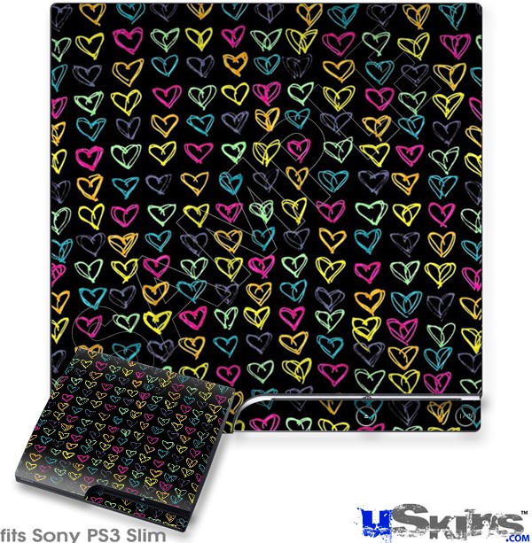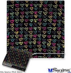 Decal Skin compatible with Sony PS3 Slim Kearas Hearts Black