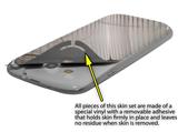 uSkins™ are self adhering vinyl skins that help prevent scratches and look great doing it. Unlike bulky silicon, plastic or metal cases and faceplates, uSkins are designed to be thin and very tough. uSkins are a composite of two layers of commercial grade materials. The bottom layer is a soft, flexible vinyl with a special removable adhesive that is easily positioned, applied without air bubbles, and effortlessly removed without leaving a sticky residue. Next we print the bottom layer with UV protected, fade resistant inks that deliver superb photo quality designs in vibrant colors. Finally we bond a professional grade laminate over the entire skin adding a glossy protective finish.