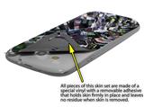 uSkins™ are self adhering vinyl skins that help prevent scratches and look great doing it. Unlike bulky silicon, plastic or metal cases and faceplates, uSkins are designed to be thin and very tough. uSkins are a composite of two layers of commercial grade materials. The bottom layer is a soft, flexible vinyl with a special removable adhesive that is easily positioned, applied without air bubbles, and effortlessly removed without leaving a sticky residue. Next we print the bottom layer with UV protected, fade resistant inks that deliver superb photo quality designs in vibrant colors. Finally we bond a professional grade laminate over the entire skin adding a glossy protective finish.