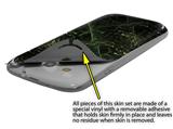 uSkins™ are self adhering vinyl skins that help prevent scratches and look great doing it. Unlike bulky silicon, plastic or metal cases and faceplates, uSkins are designed to be thin and very tough. uSkins are a composite of two layers of commercial grade materials. The bottom layer is a soft, flexible vinyl with a special removable adhesive that is easily positioned, applied without air bubbles, and effortlessly removed without leaving a sticky residue. Next we print the bottom layer with UV protected, fade resistant inks that deliver superb photo quality designs in vibrant colors. Finally we bond a professional grade laminate over the entire skin adding a glossy protective finish.