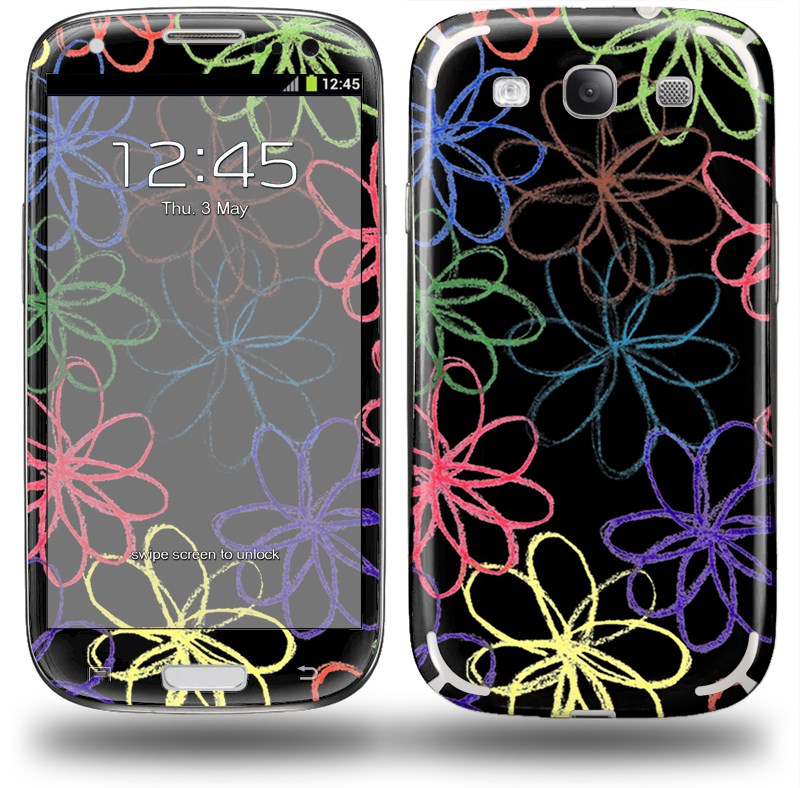 Kearas Flowers on Black - Decal Style Skin (fits Samsung Galaxy S III S3)