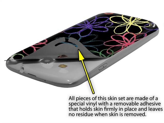 • Decal style vinyl skin covers front and back of Samsung Galaxy S III S3 phone.
