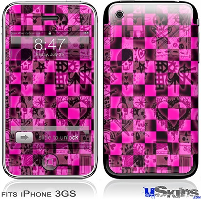 iPhone 3GS Skin - Pink Checkerboard Sketches