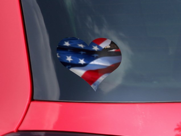 American USA Flag (Ole Glory) - I Heart Love Car Window Decal 6.5 x 5.5 inches