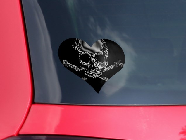Chrome Skull on Black - I Heart Love Car Window Decal 6.5 x 5.5 inches