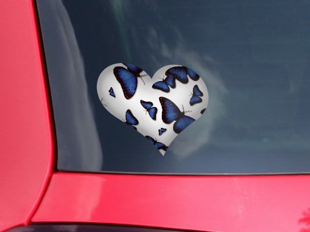 Butterflies Blue - I Heart Love Car Window Decal 6.5 x 5.5 inches