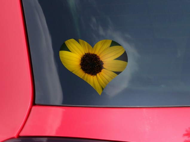 Yellow Daisy - I Heart Love Car Window Decal 6.5 x 5.5 inches