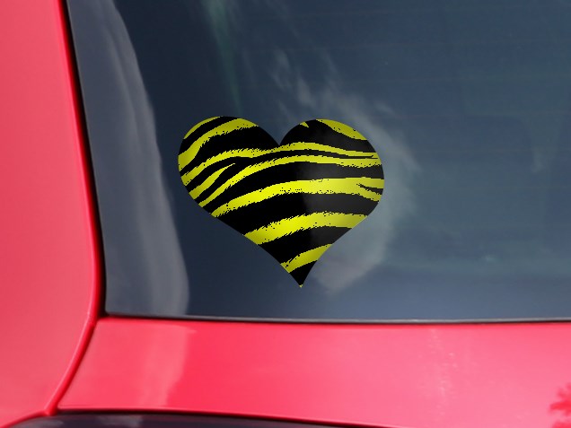 Zebra Yellow - I Heart Love Car Window Decal 6.5 x 5.5 inches