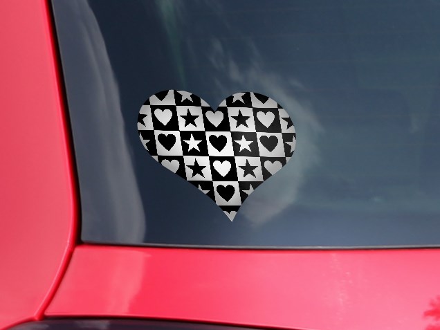 Hearts And Stars Black and White - I Heart Love Car Window Decal 6.5 x 5.5 inches