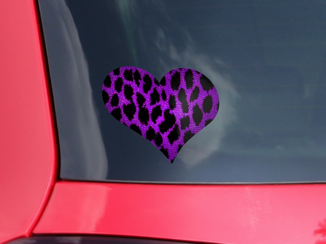 Purple Leopard - I Heart Love Car Window Decal 6.5 x 5.5 inches