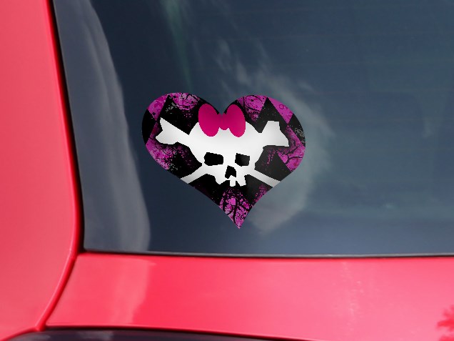 Pink Diamond Skull - I Heart Love Car Window Decal 6.5 x 5.5 inches