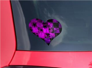 Purple Star Checkerboard - I Heart Love Car Window Decal 6.5 x 5.5 inches