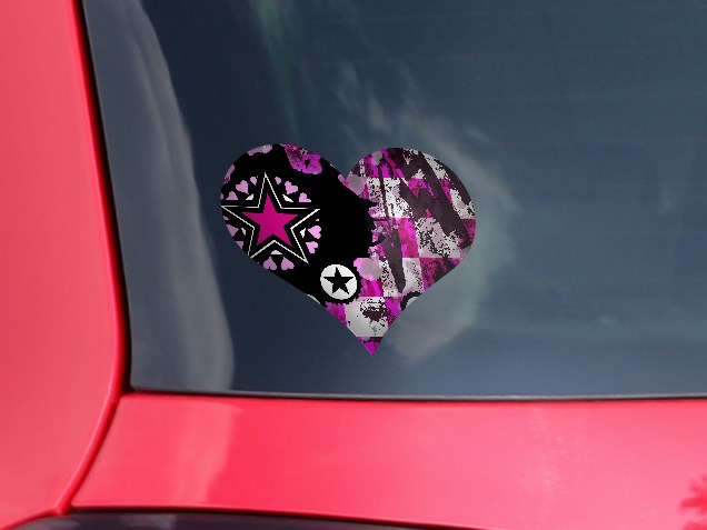 Pink Star Splatter - I Heart Love Car Window Decal 6.5 x 5.5 inches