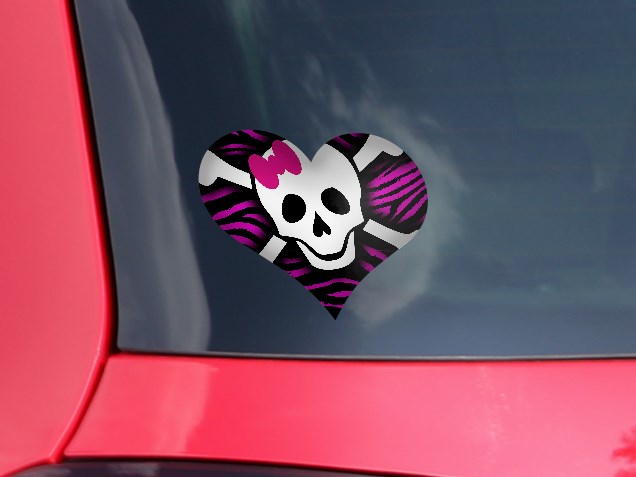 Pink Zebra Skull - I Heart Love Car Window Decal 6.5 x 5.5 inches