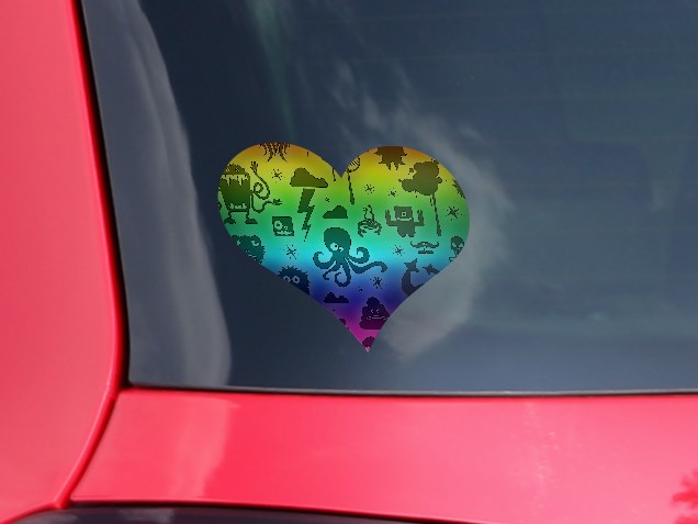 Cute Rainbow Monsters - I Heart Love Car Window Decal 6.5 x 5.5 inches