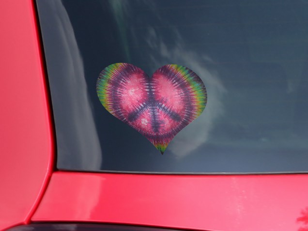 Tie Dye Peace Sign 103 - I Heart Love Car Window Decal 6.5 x 5.5 inches