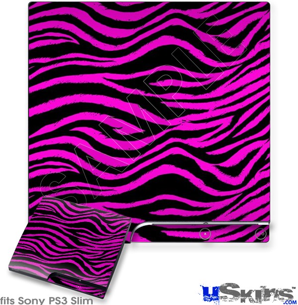 Decal Skin compatible with Sony PS3 Slim Pink Zebra