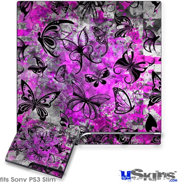 Decal Skin compatible with Sony PS3 Slim Butterfly Graffiti