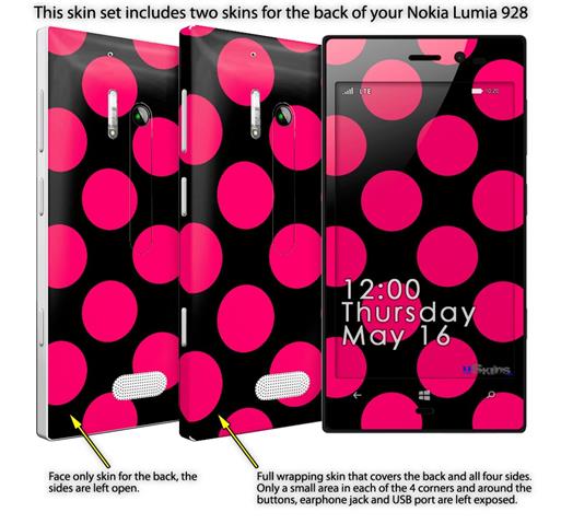 Kearas Polka Dots Pink On Black - Decal Style Skin (fits Nokia Lumia 928)