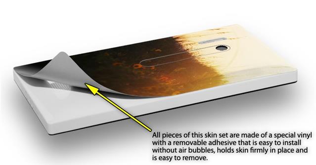 uSkins™ are self adhering vinyl skins that help prevent scratches and look great doing it. Unlike bulky silicon, plastic or metal cases and faceplates, uSkins are designed to be thin and very tough. uSkins are a composite of two layers of commercial grade materials. The bottom layer is a soft, flexible vinyl with a special removable adhesive that is easily positioned, applied without air bubbles, and effortlessly removed without leaving a sticky residue. Next we print the bottom layer with UV protected, fade resistant inks that deliver superb photo quality designs in vibrant colors. Finally we bond a professional grade laminate over the entire skin adding a glossy protective finish.