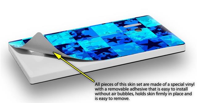 uSkins™ are self adhering vinyl skins that help prevent scratches and look great doing it. Unlike bulky silicon, plastic or metal cases and faceplates, uSkins are designed to be thin and very tough. uSkins are a composite of two layers of commercial grade materials. The bottom layer is a soft, flexible vinyl with a special removable adhesive that is easily positioned, applied without air bubbles, and effortlessly removed without leaving a sticky residue. Next we print the bottom layer with UV protected, fade resistant inks that deliver superb photo quality designs in vibrant colors. Finally we bond a professional grade laminate over the entire skin adding a glossy protective finish.