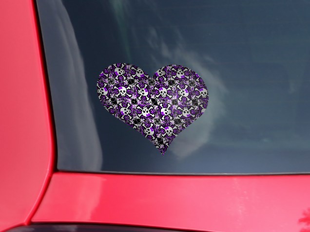 Splatter Girly Skull Purple - I Heart Love Car Window Decal 6.5 x 5.5 inches