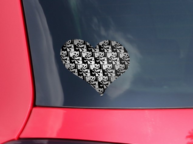 Skull Checker - I Heart Love Car Window Decal 6.5 x 5.5 inches