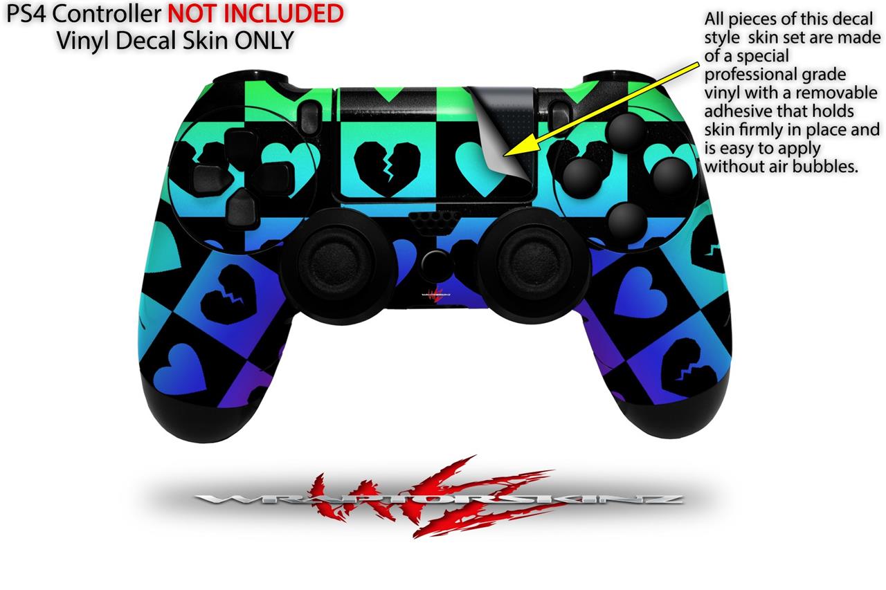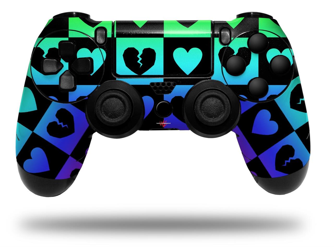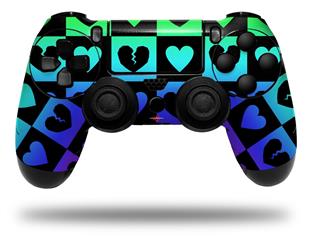 WraptorSkinz Skin compatible with Sony PS4 Dualshock Controller PlayStation 4 Original Slim and Pro Love Heart Checkers Rainbow (CONTROLLER NOT INCLUDED)