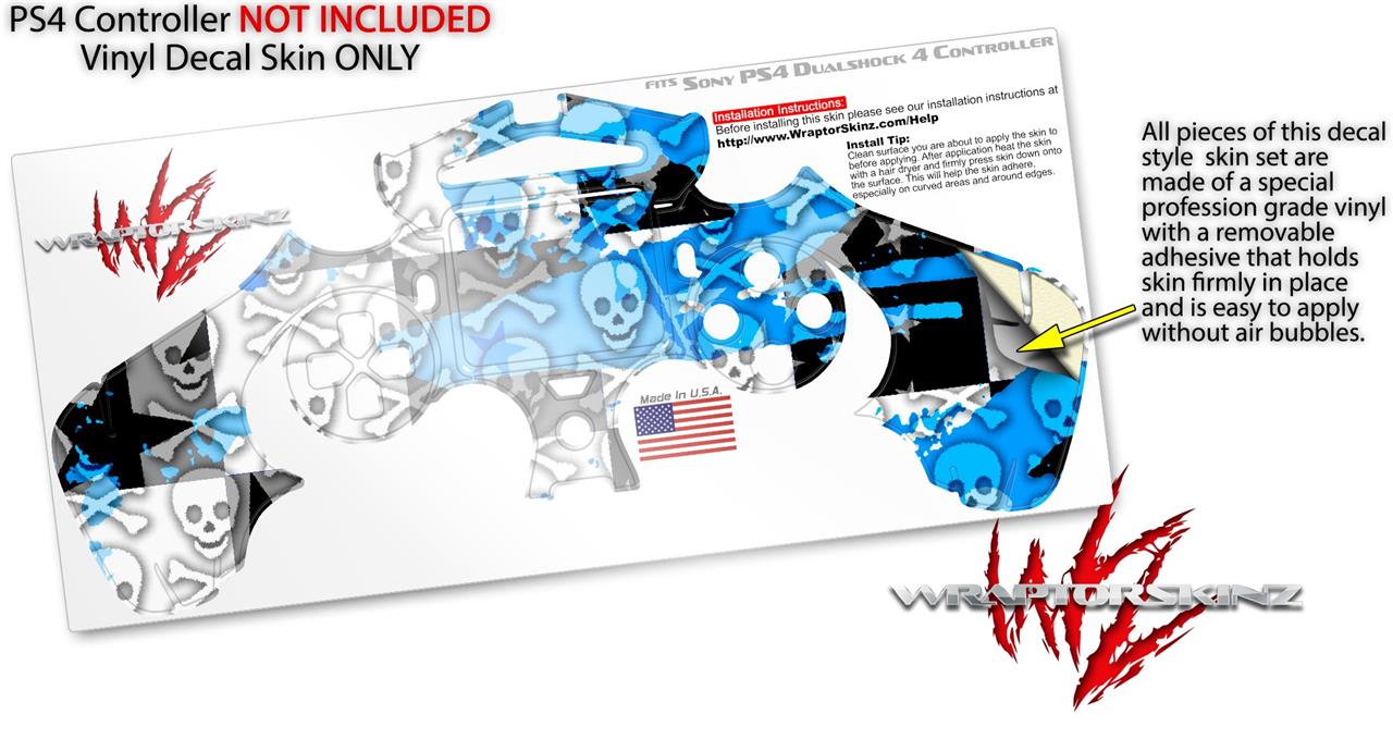 WraptorSkinz Skin compatible with Sony PS4 Dualshock Controller PlayStation 4 Original Slim and Pro Checker Skull Splatter Blue (CONTROLLER NOT INCLUDED)