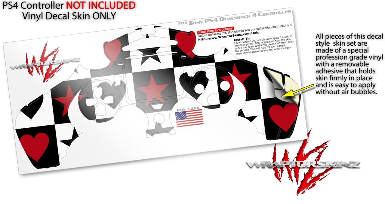 WraptorSkinz Skin compatible with Sony PS4 Dualshock Controller PlayStation 4 Original Slim and Pro Hearts and Stars Red (CONTROLLER NOT INCLUDED)
