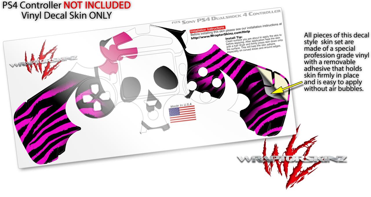 WraptorSkinz Skin compatible with Sony PS4 Dualshock Controller PlayStation 4 Original Slim and Pro Pink Zebra Skull (CONTROLLER NOT INCLUDED)