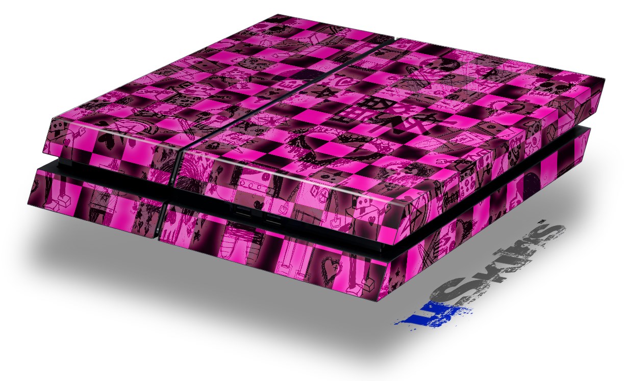 Vinyl Decal Skin Wrap compatible with Sony PlayStation 4 Original Console Pink Checkerboard Sketches (PS4 NOT INCLUDED)