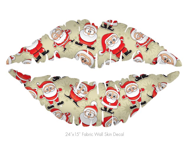 Lots of Santas - Kissing Lips Fabric Wall Skin Decal measures 24x15 inches
