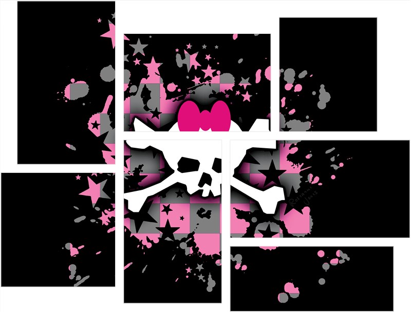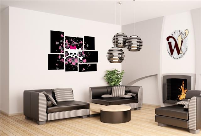 Scene Skull Splatter - 7 Piece Fabric Peel and Stick Wall Skin Art (50x38 inches)