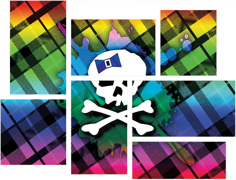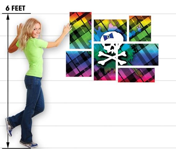 Rainbow Plaid Skull - 7 Piece Fabric Peel and Stick Wall Skin Art (50x38 inches)