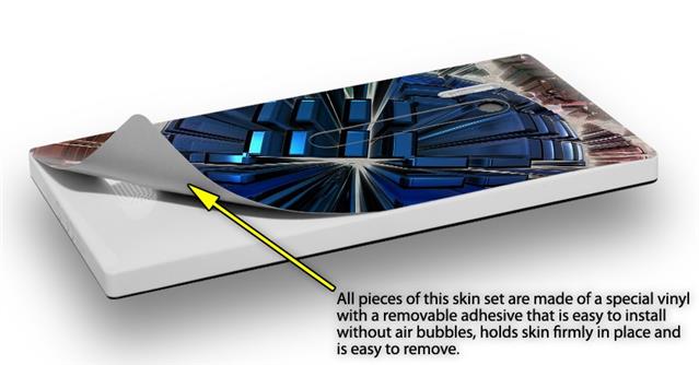 uSkins™ are self adhering vinyl skins that help prevent scratches and look great doing it. Unlike bulky silicon, plastic or metal cases and faceplates, uSkins are designed to be thin and very tough. uSkins are a composite of two layers of commercial grade materials. The bottom layer is a soft, flexible vinyl with a special removable adhesive that is easily positioned, applied without air bubbles, and effortlessly removed without leaving a sticky residue. Next we print the bottom layer with UV protected, fade resistant inks that deliver superb photo quality designs in vibrant colors. Finally we bond a professional grade laminate over the entire skin adding a glossy protective finish.