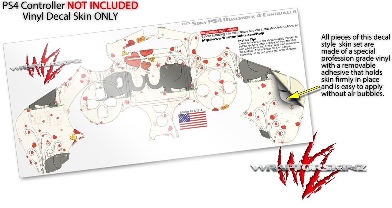 WraptorSkinz Skin compatible with Sony PS4 Dualshock Controller PlayStation 4 Original Slim and Pro Elephant Love (CONTROLLER NOT INCLUDED)