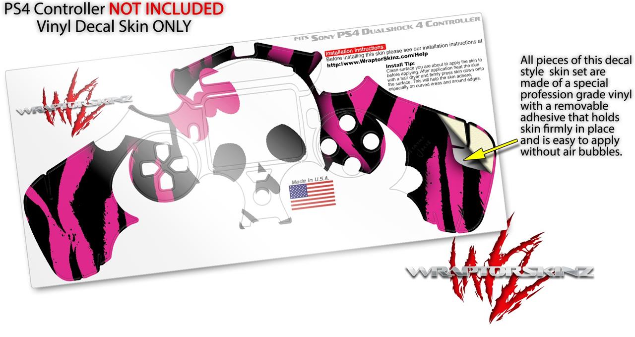 WraptorSkinz Skin compatible with Sony PS4 Dualshock Controller PlayStation 4 Original Slim and Pro Pink Zebra Skull (CONTROLLER NOT INCLUDED)