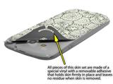 uSkins™ are self adhering vinyl skins that help prevent scratches and look great doing it. Unlike bulky silicon, plastic or metal cases and faceplates, uSkins are designed to be thin and very tough. uSkins are a composite of two layers of commercial grade materials. The bottom layer is a soft, flexible vinyl with a special removable adhesive that is easily positioned, applied without air bubbles, and effortlessly removed without leaving a sticky residue. Next we print the bottom layer with UV protected, fade resistant inks that deliver superb photo quality designs in vibrant colors. Finally we bond a professional grade laminate over the entire skin adding a glossy protective finish.