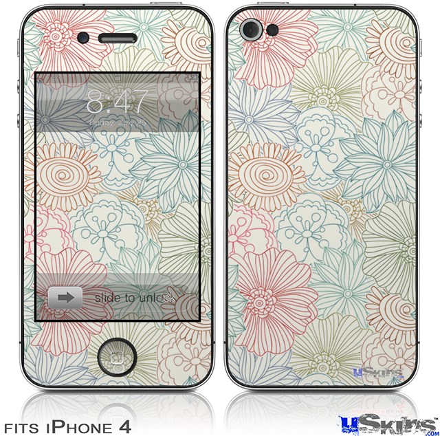 iPhone 4 Decal Style Vinyl Skin - Flowers Pattern 02 (DOES NOT fit newer iPhone 4S)
