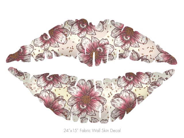 Flowers Pattern 23 - Kissing Lips Fabric Wall Skin Decal measures 24x15 inches