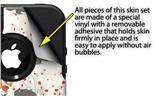 uSkins™ are self adhering vinyl decal style skins and are a great way to add a new look to your protective case. uSkins are a composite of two layers of commercial grade materials. The bottom layer is a soft, flexible vinyl with a special removable adhesive that is easily positioned, applied without air bubbles. Next we print the bottom layer with UV protected, fade resistant inks that deliver superb photo quality designs in vibrant colors. Finally we bond a professional grade laminate over the entire skin adding a glossy protective finish.