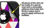 uSkins™ are self adhering vinyl decal style skins and are a great way to add a new look to your protective case. uSkins are a composite of two layers of commercial grade materials. The bottom layer is a soft, flexible vinyl with a special removable adhesive that is easily positioned, applied without air bubbles. Next we print the bottom layer with UV protected, fade resistant inks that deliver superb photo quality designs in vibrant colors. Finally we bond a professional grade laminate over the entire skin adding a glossy protective finish.
