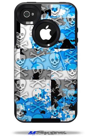 Checker Skull Splatter Blue - Decal Style Vinyl Skin fits Otterbox Commuter iPhone4/4s Case (CASE SOLD SEPARATELY)