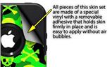 uSkins™ are self adhering vinyl decal style skins and are a great way to add a new look to your protective case. uSkins are a composite of two layers of commercial grade materials. The bottom layer is a soft, flexible vinyl with a special removable adhesive that is easily positioned, applied without air bubbles. Next we print the bottom layer with UV protected, fade resistant inks that deliver superb photo quality designs in vibrant colors. Finally we bond a professional grade laminate over the entire skin adding a glossy protective finish.