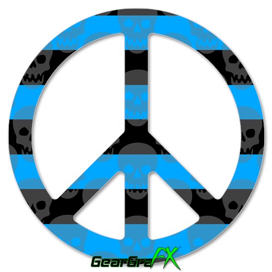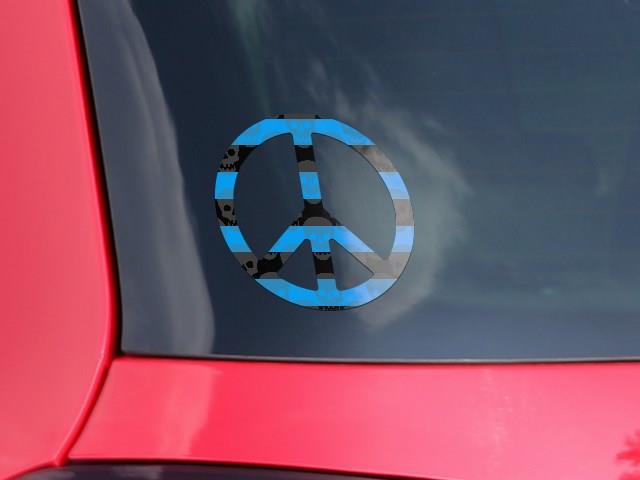 Skull Stripes Blue - Peace Sign Car Window Decal 6 x 6 inches